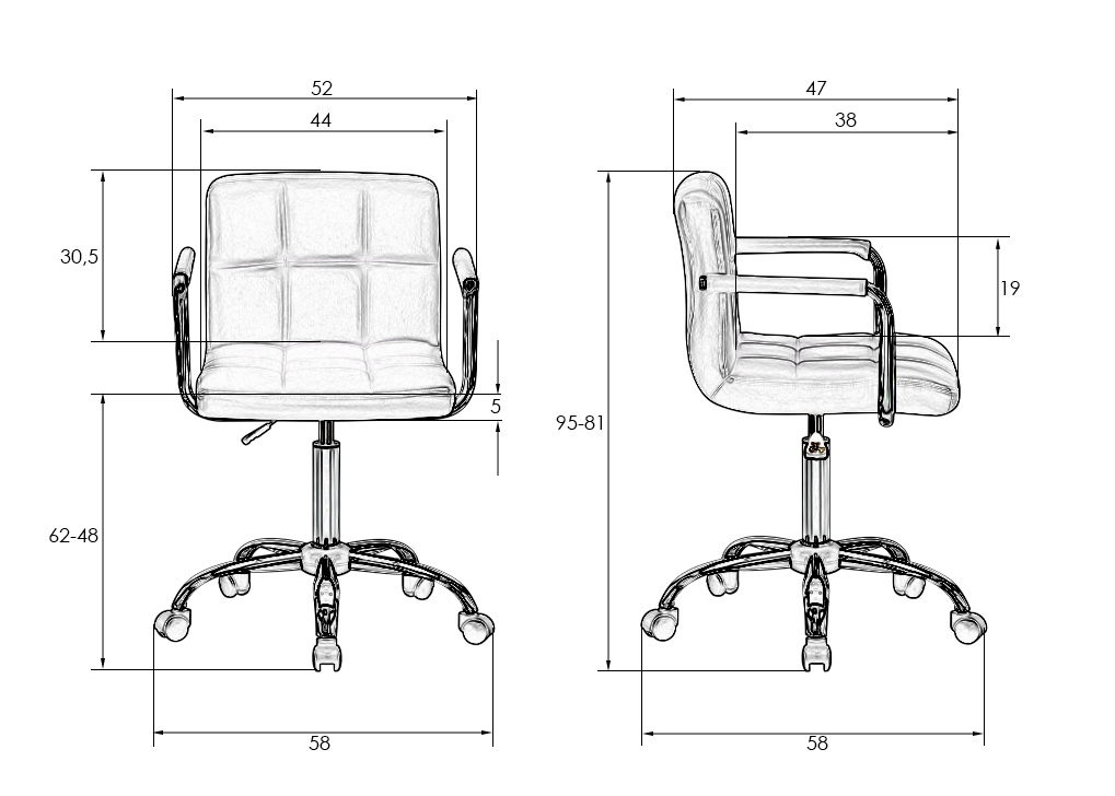 Высота подлокотников, см: 19