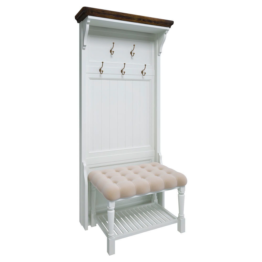 Изысканная прихожая органично впишется в любой классический интерьер. Особое очарование модели придает стильная позолоченная фурнитура. Окрашенный в цвет «темного дуба» карниз сделан из патированного массива ясеня. Компактный предмет мебели можно использовать для обустройства небольшого коридора или просторной прихожей загородного особняка. Продаётся без скамьи. Сборка не требуется.