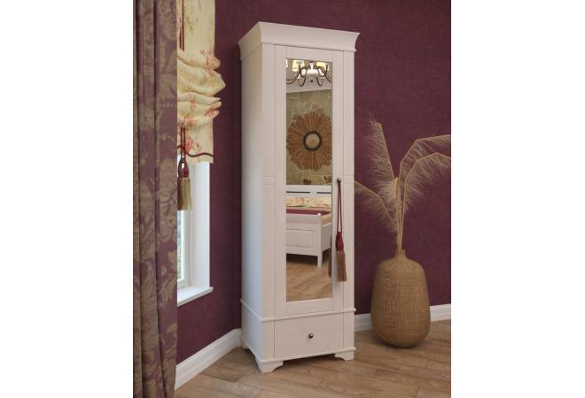 Шкаф 1-дверный с зеркалом Бейли белый воск
